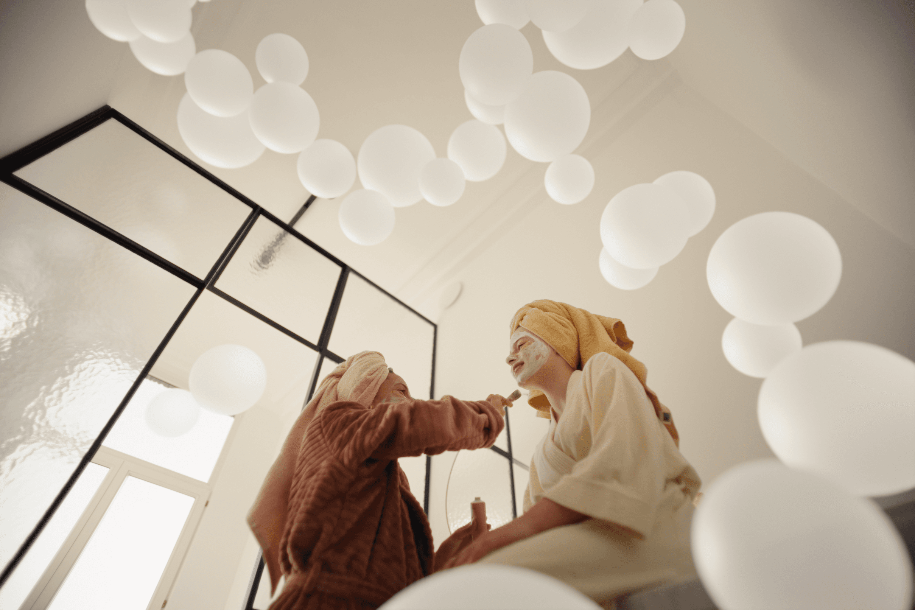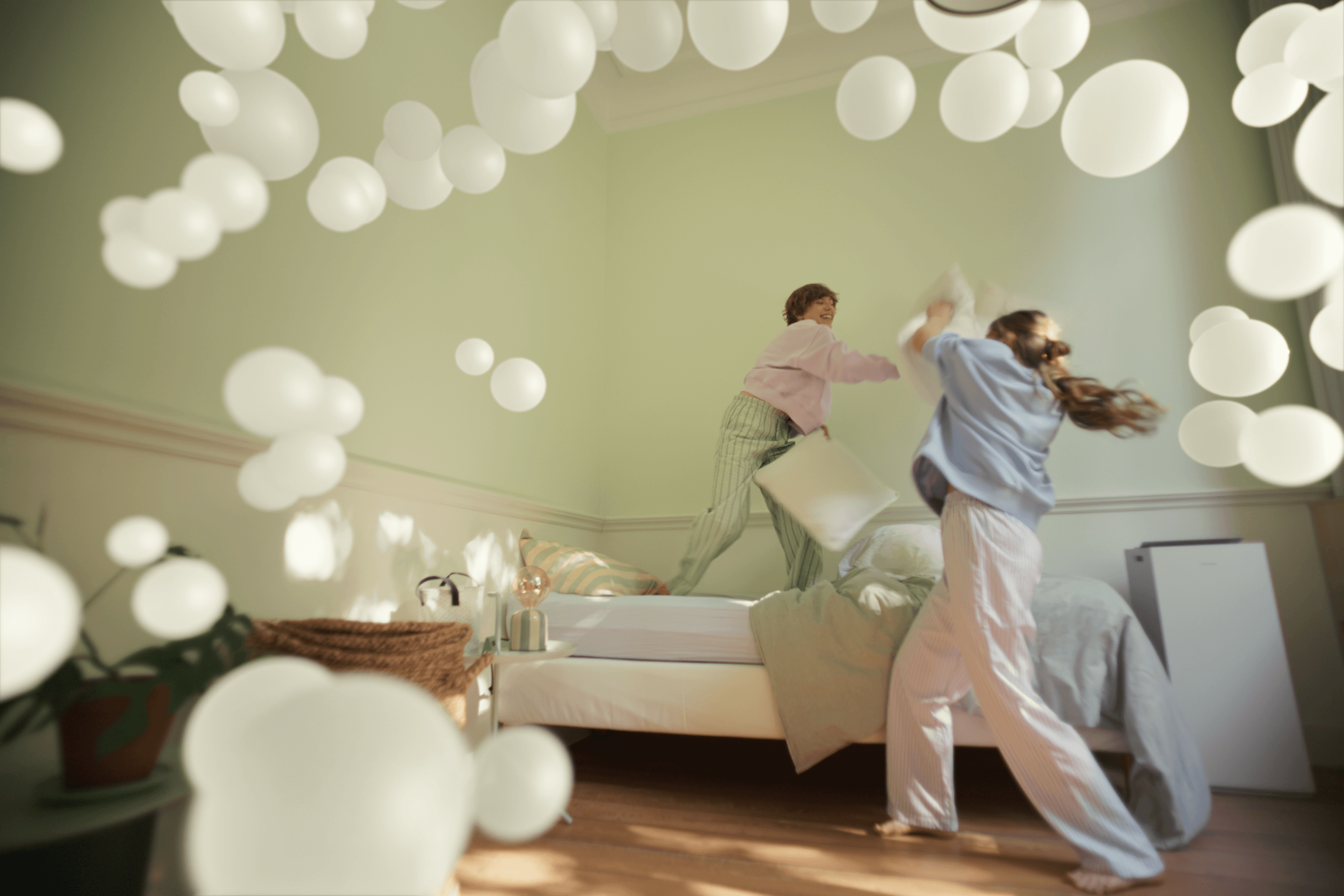 The visual idea translated air into colorful, floating bubbles, symbolizing comfort, presence, and atmosphere. To achieve the necessary flexibility across formats and media, we explored several approaches before developing a fully modular bubble system in Blender. This allowed precise control over scale, placement, and behavior, ensuring consistency while adapting to a wide range of shots and compositions.